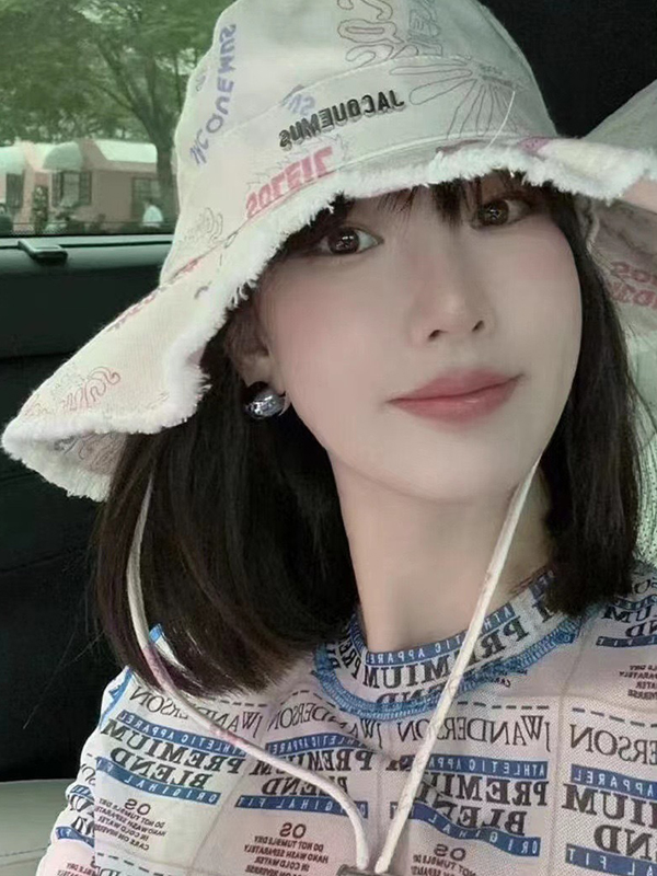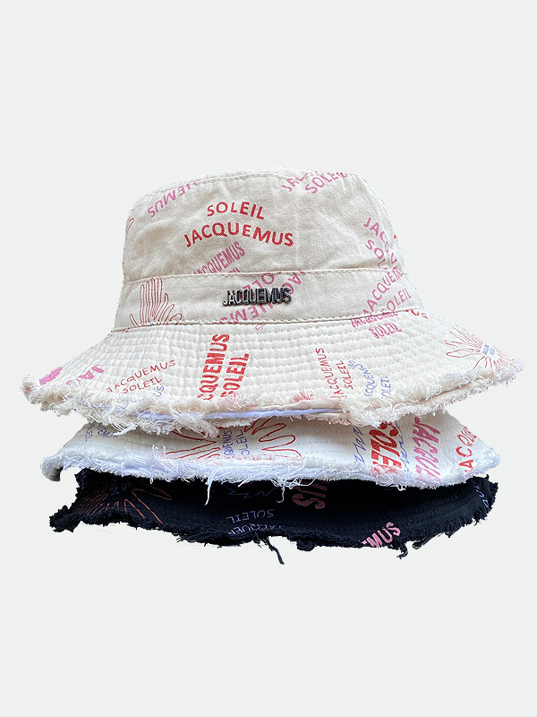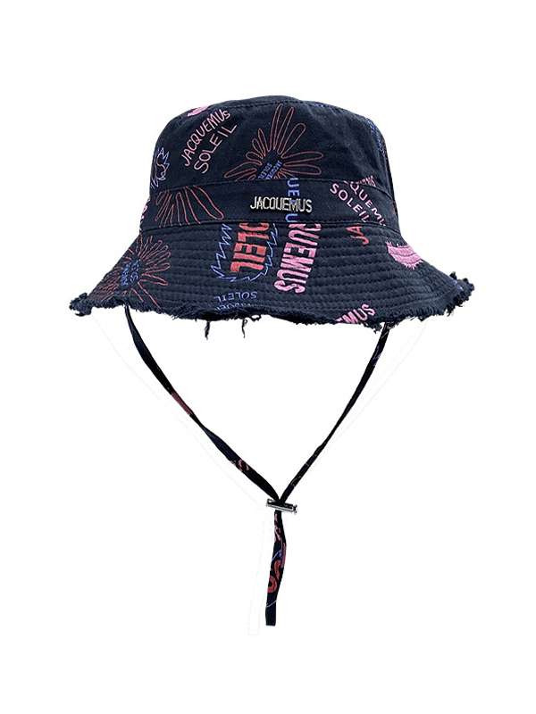 Sombrero de pescador a prueba de sol con ribete crudo y estampado colorido lavado