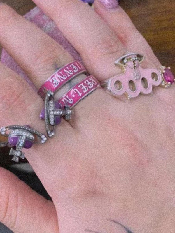 Anillo de puño de esmalte con adorno de diamantes de imitación