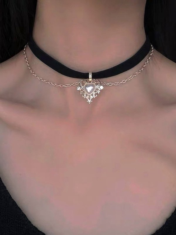 Gargantilla de terciopelo con cadena de corazón gótico