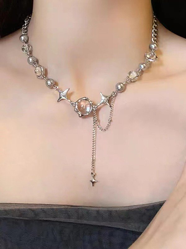 Collar de cadena de cuentas de estrella de diamantes de imitación