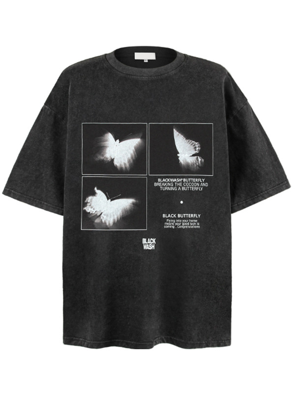 Camiseta extragrande de manga corta con estampado de mariposas para hombre