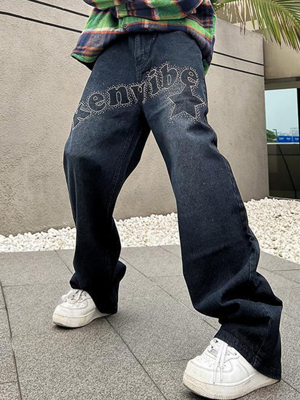 Vaqueros holgados de pierna recta con lavado vintage para hombre
