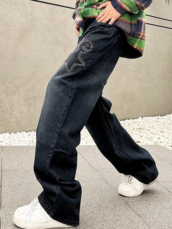 Vaqueros holgados con estampado de calaveras para hombre