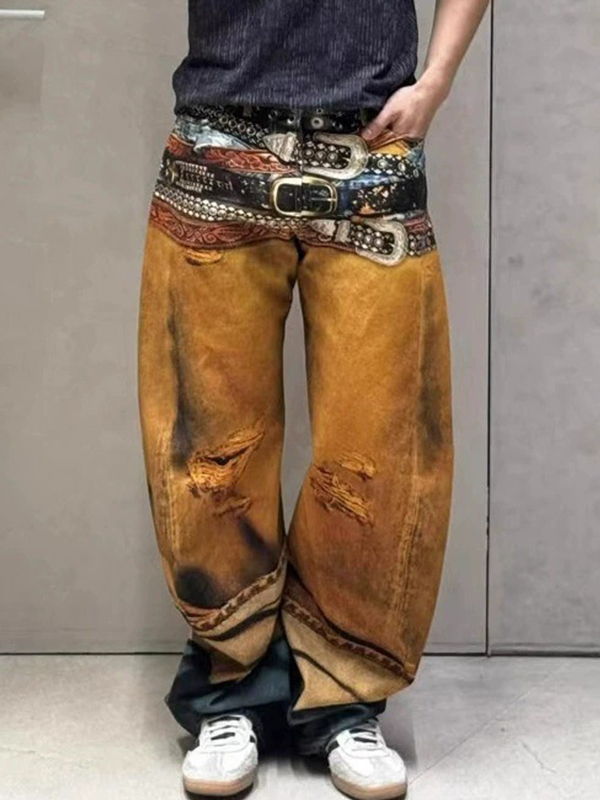 Pantalones deportivos y casuales desgastados retro para hombre