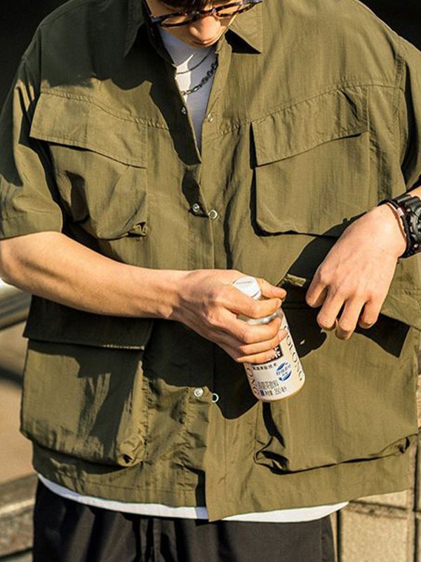 Camisa cargo de manga corta con bolsillo vintage para hombre