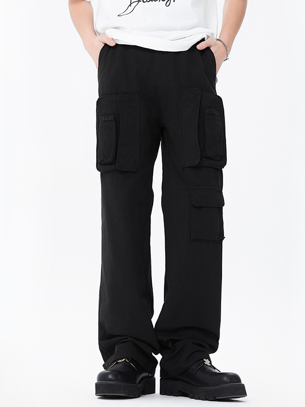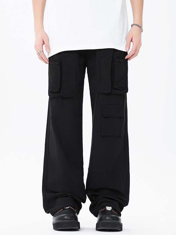 Pantalones cargo negros sueltos con múltiples bolsillos para hombre