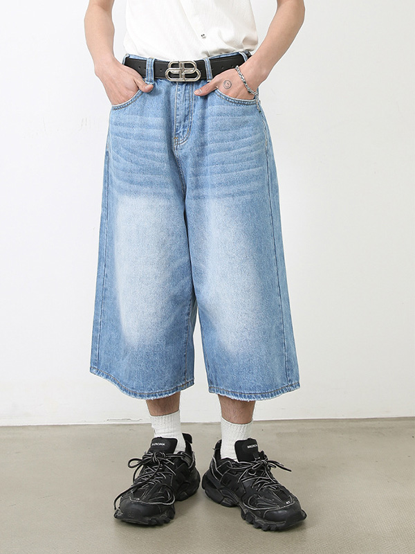 Shorts vaqueros de pierna recta y estilo urbano con pierna ancha