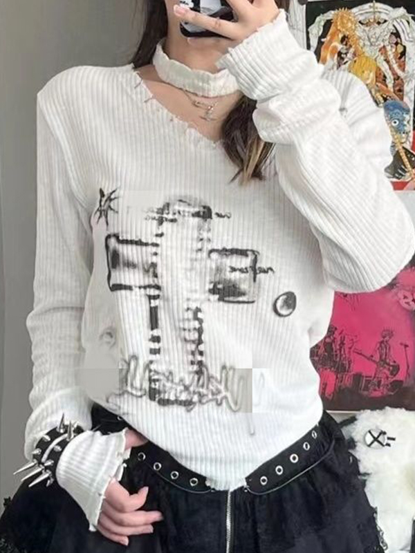 Prendas de punto de manga larga con estampado de cruces vintage