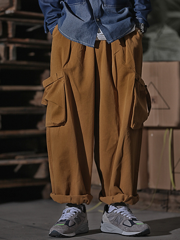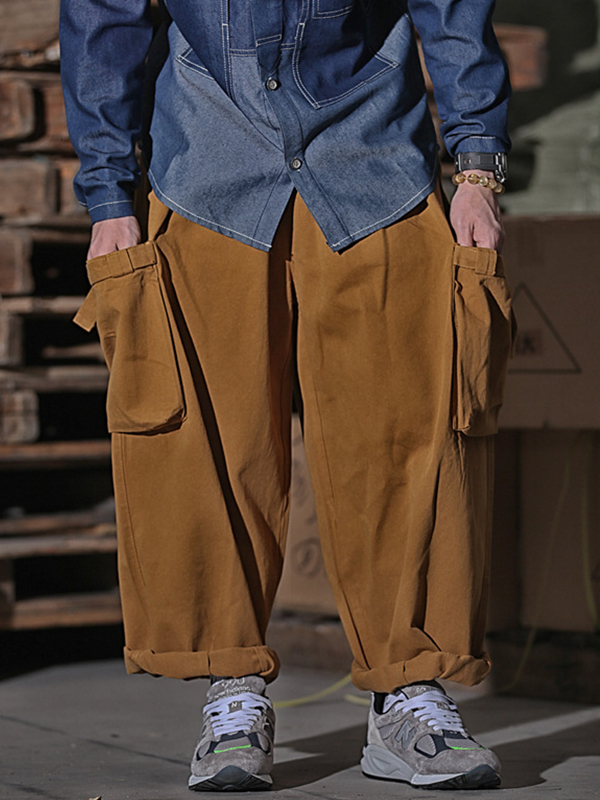 Pantalones cargo sueltos de pierna ancha con bolsillo grande para hombre