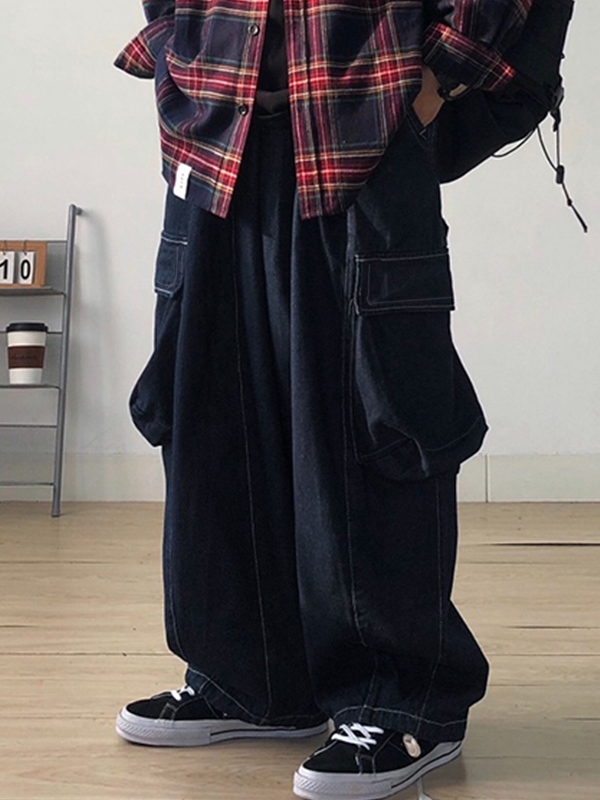 Vaqueros holgados de pierna recta con lavado vintage para hombre