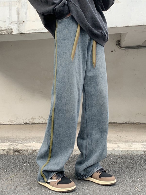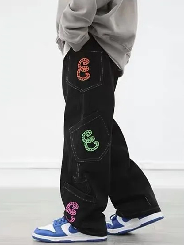 Jeans sueltos con múltiples bolsillos y estampado colorido para hombre