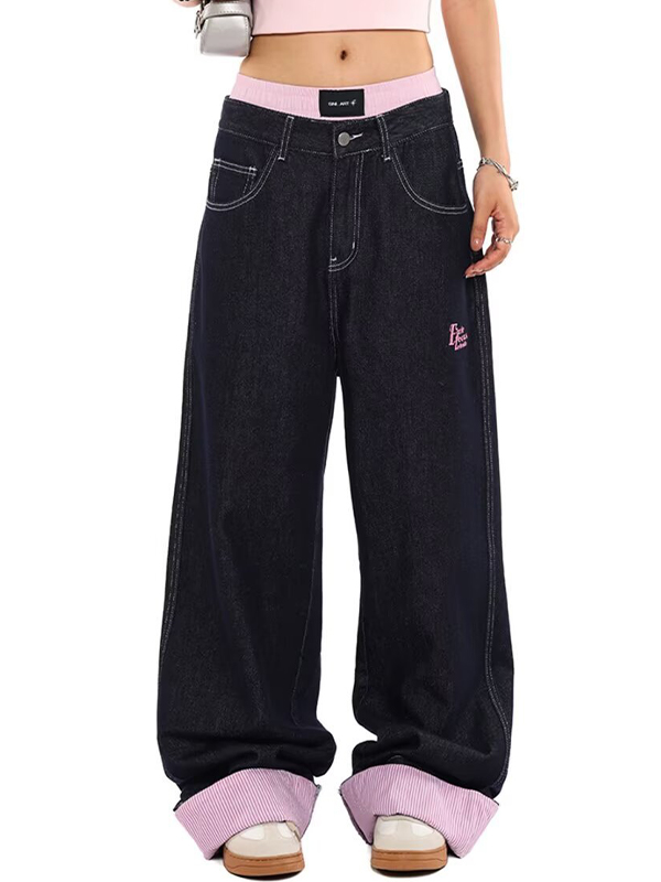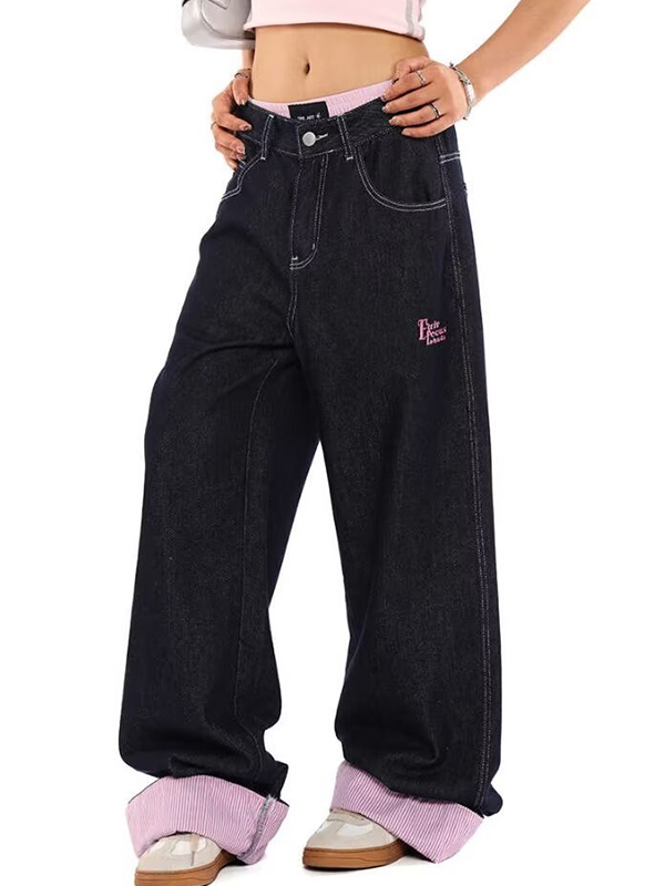 Jeans boyfriend con diseño de costura rizada y diseño Sense