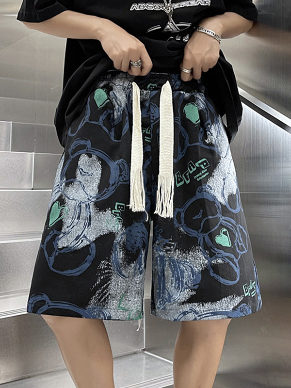 pantalones cortos con cordón y estampado de oso de dibujos animados irregulares para hombre