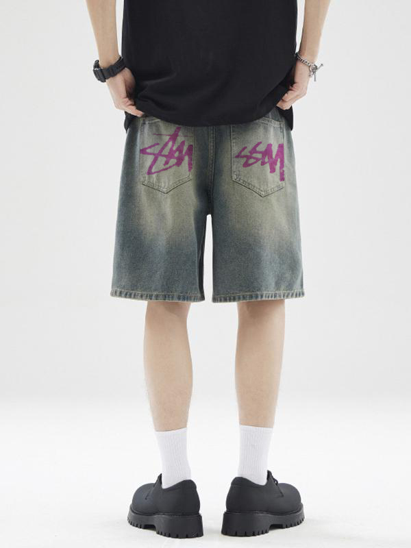 pantalones cortos de mezclilla casuales sueltos con estampado de letras para hombre