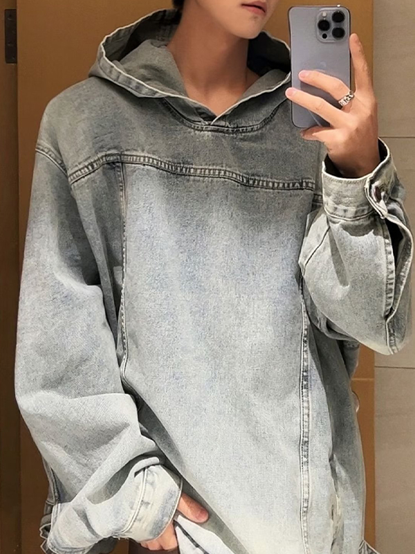 Sudadera con capucha extragrande de mezclilla vintage lavada para hombre