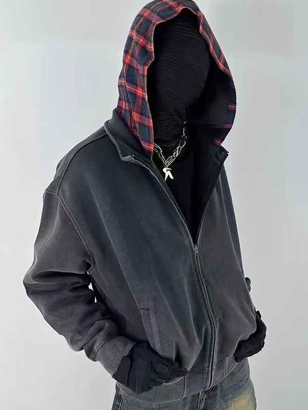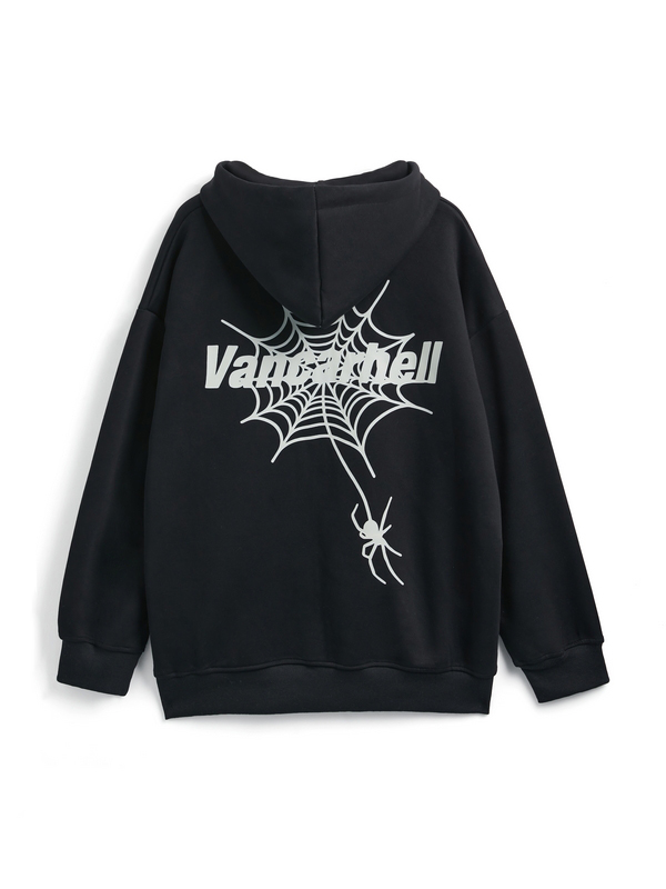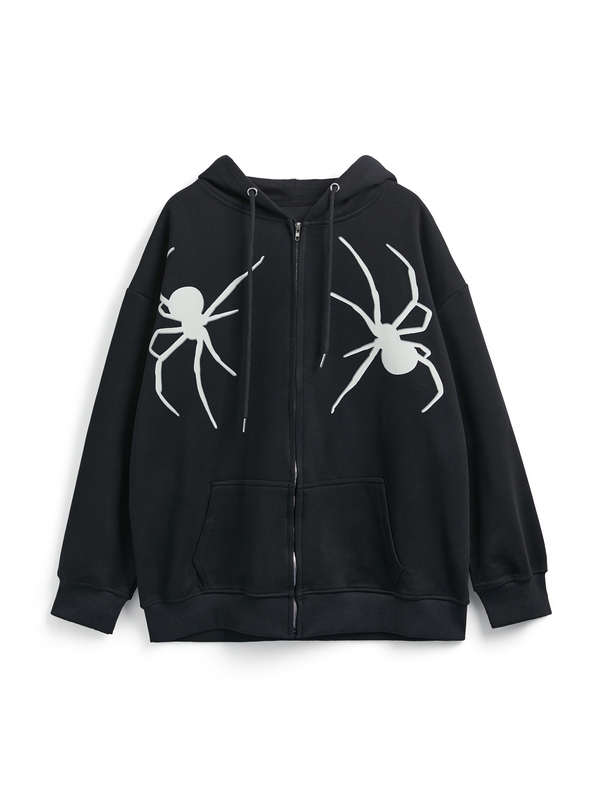 Sudadera con capucha extragrande y cremallera completa con estampado de araña punk para hombre