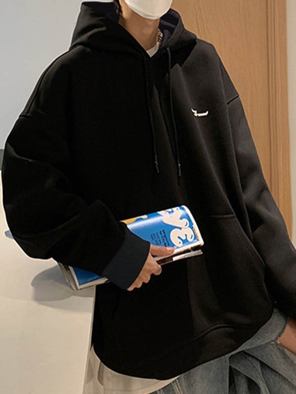 Sudadera con capucha extragrande y versátil de color liso para hombre