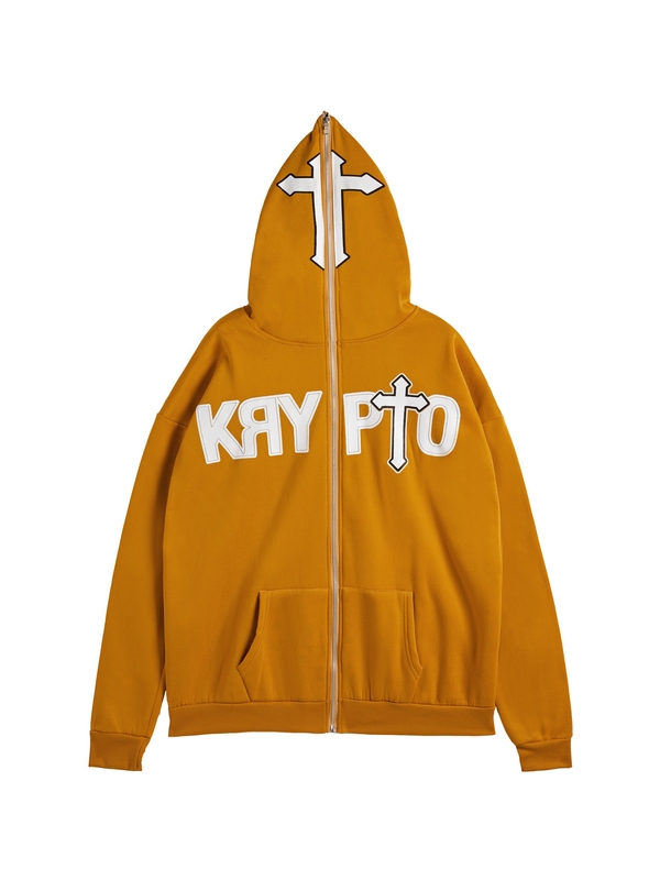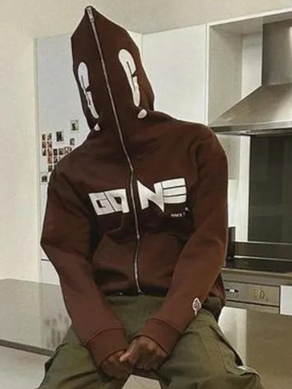 Sudadera con capucha extragrande con cremallera completa y estampado Hip Pop para hombre