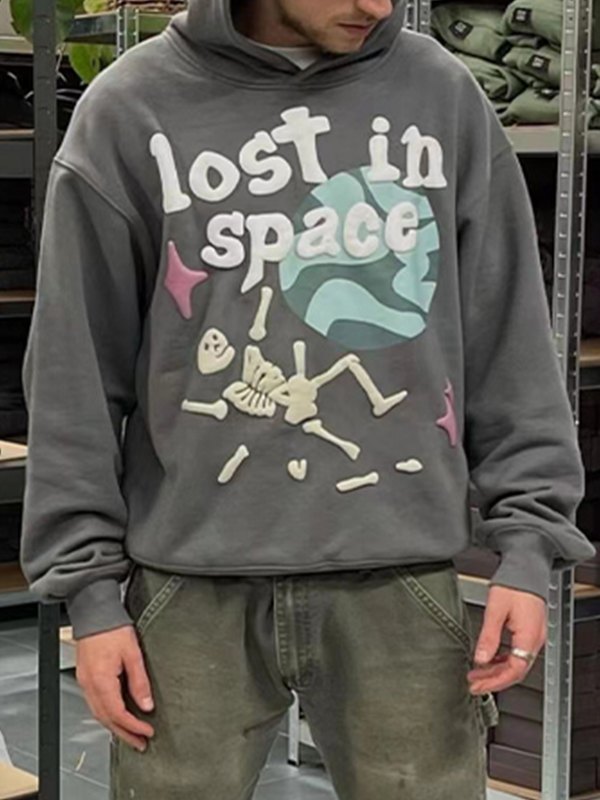 Sudadera con capucha de manga larga y estampado holgado para hombre
