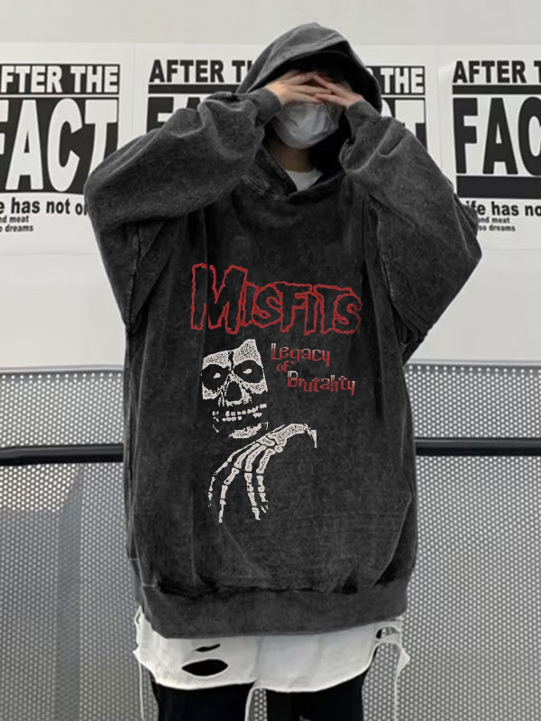 Sudadera con capucha extragrande con estampado de calavera desgastada para hombre