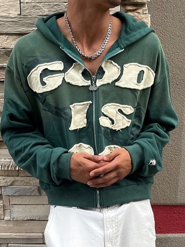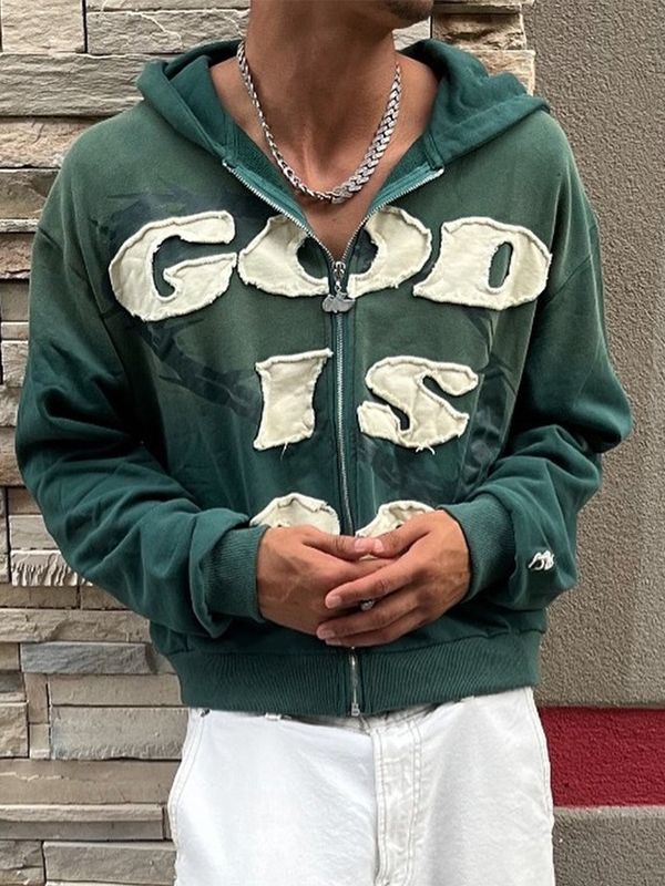 Sudadera con capucha y cremallera con letras góticas para hombre