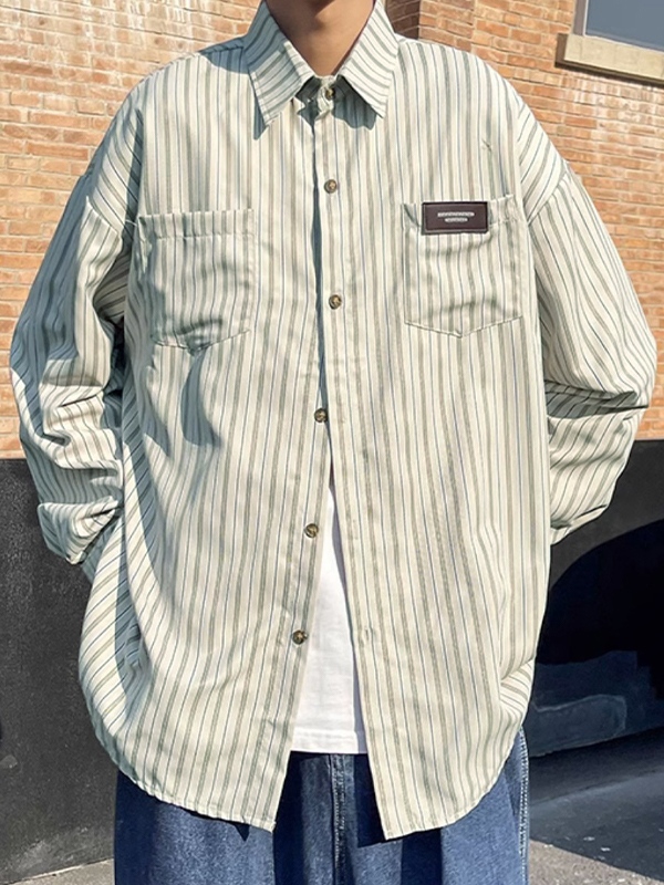 Blusa de manga larga adornada con etiqueta a rayas para hombre