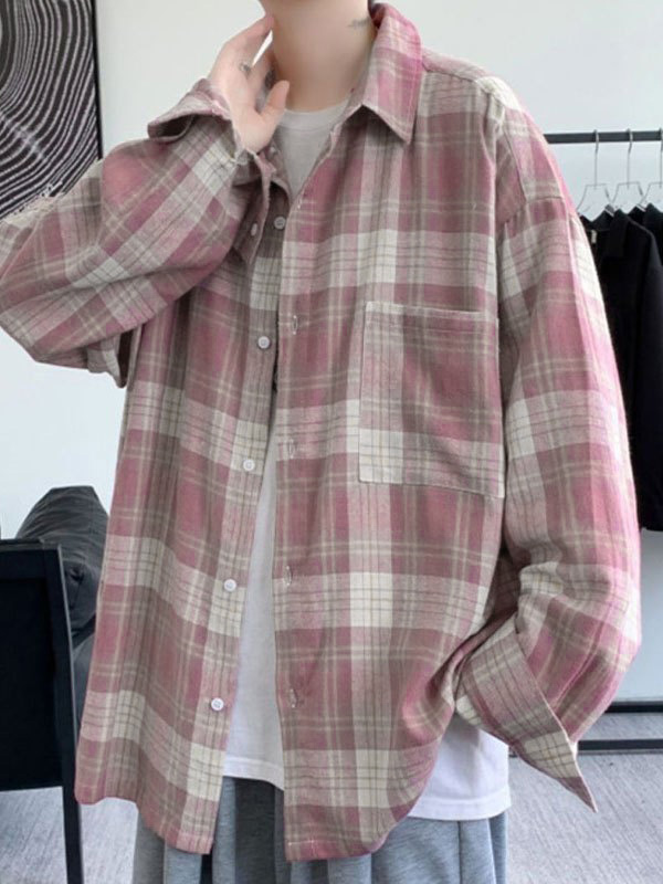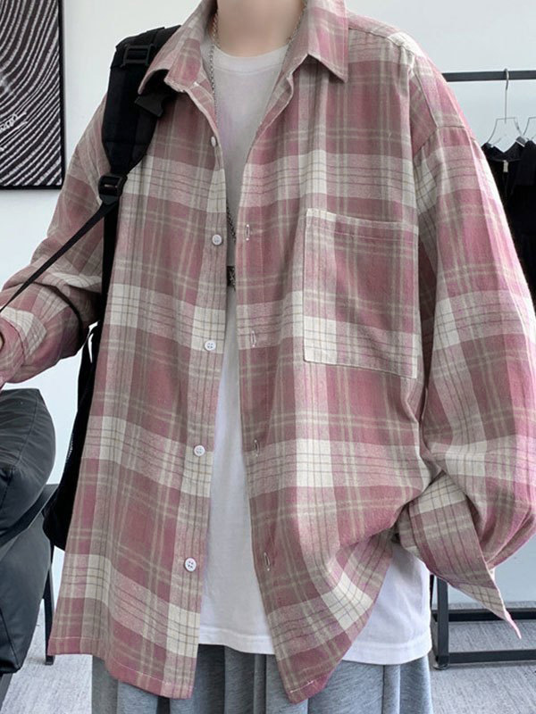 Blusa de hombre de manga larga adornada con estampado a cuadros