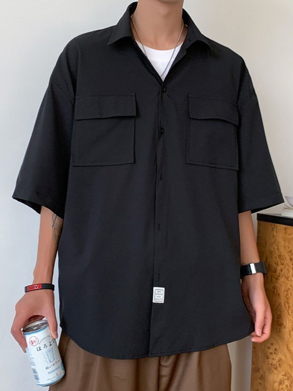 Camisa de hombre de manga corta con bolsillo delantero y botones