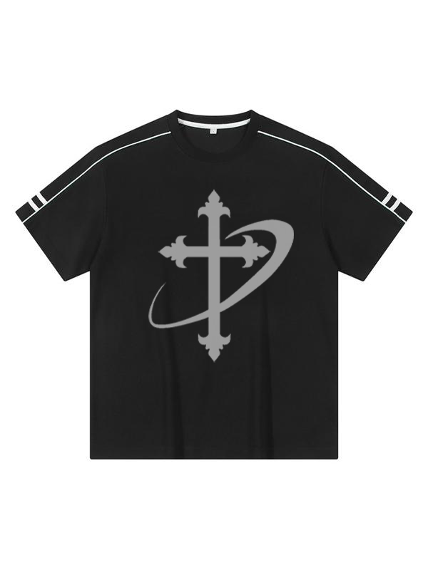 Camiseta extragrande de manga corta con estampado de rayas urbanas para hombre