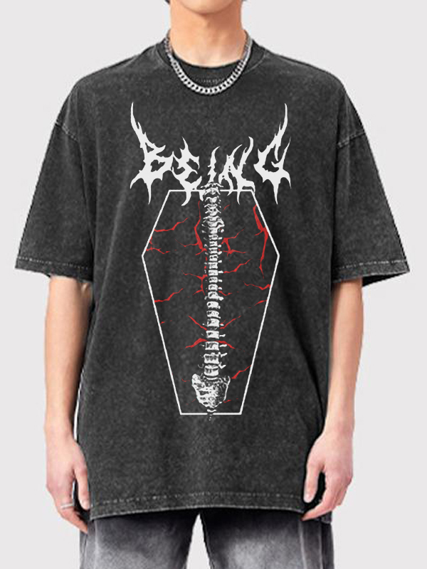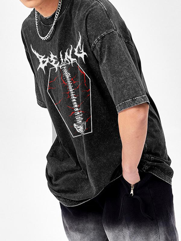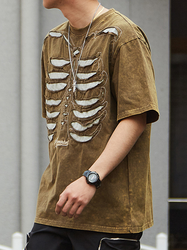 Camiseta extragrande de manga corta con estampado de huesos para hombre