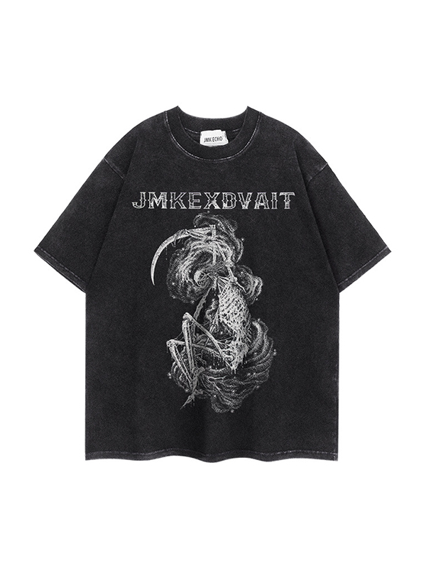 Camiseta extragrande de manga corta con estampado oscuro para hombre