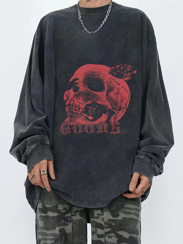 Manga corta con estampado de estilo oscuro de calavera del pequeño diablo