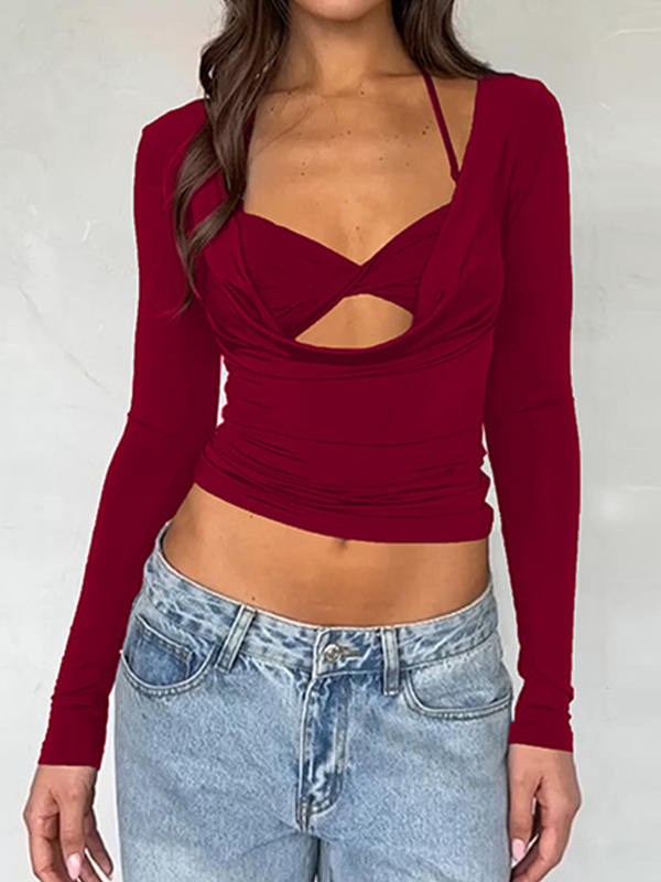 Camiseta de manga larga con hombros caídos y color liso para hombre