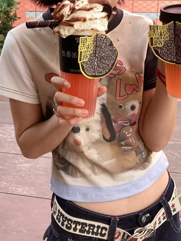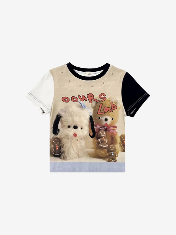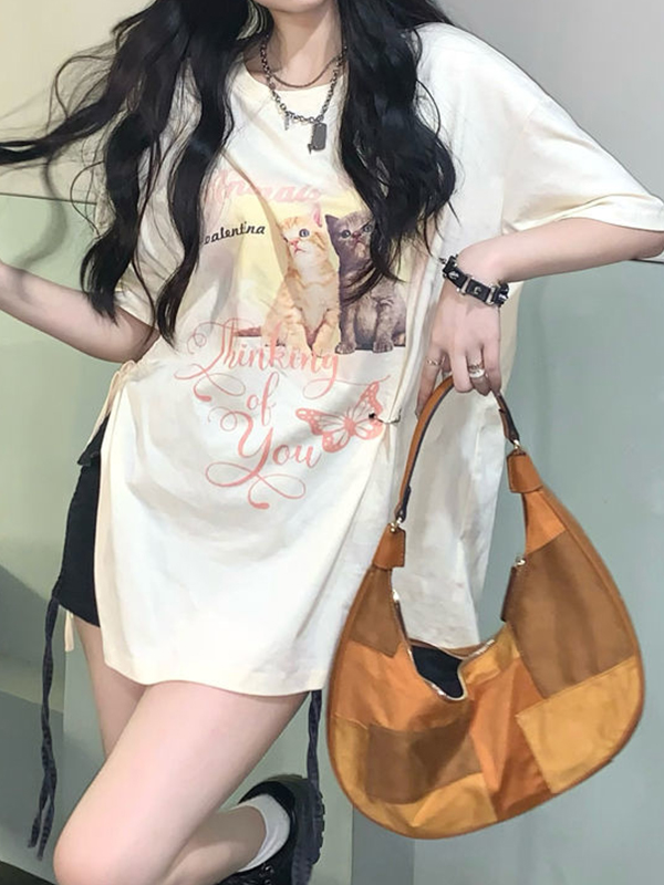 Camiseta de manga corta extragrande con cordón y estampado de gato