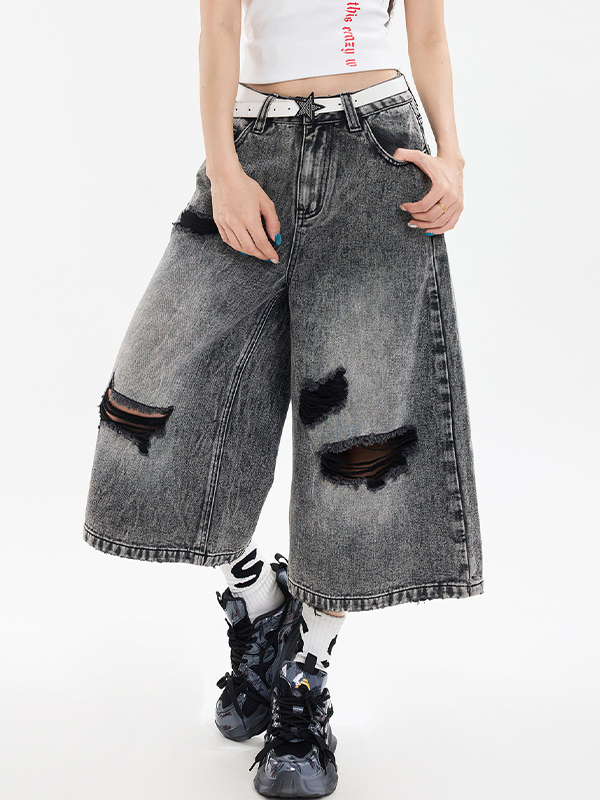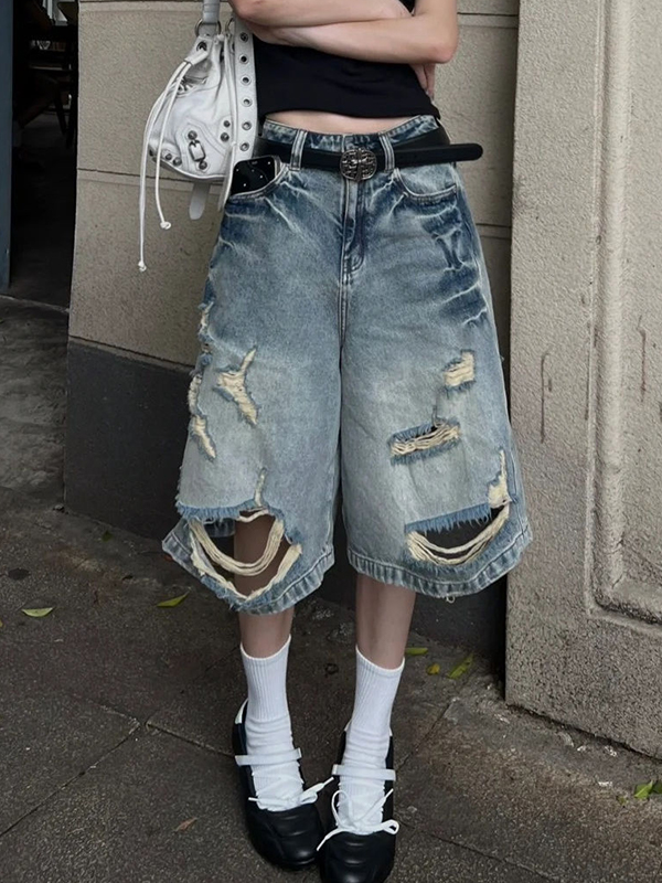 Pantalones cortos vaqueros con parches de leopardo de estilo vintage americano