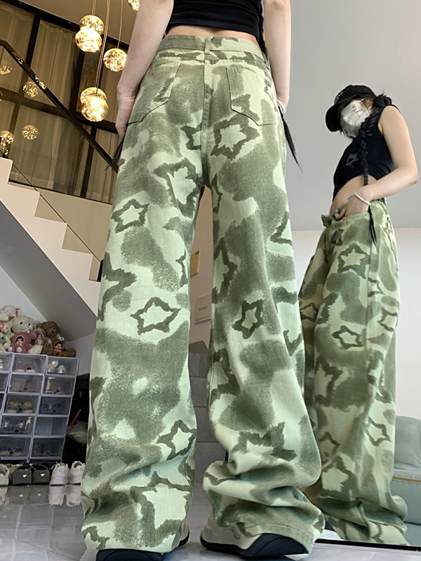Pantalones vaqueros boyfriend de camuflaje verde para trabajo