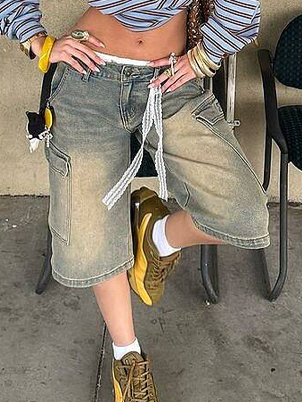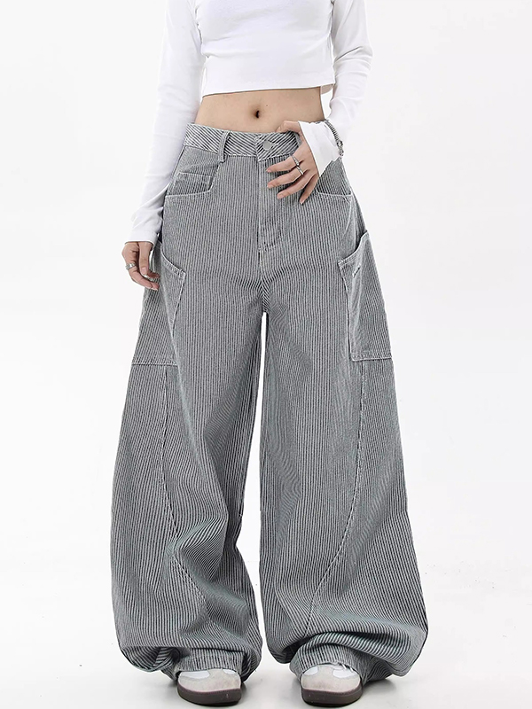 Vaqueros Boyfriend estilo cimitarra con rayas estilo retro americano