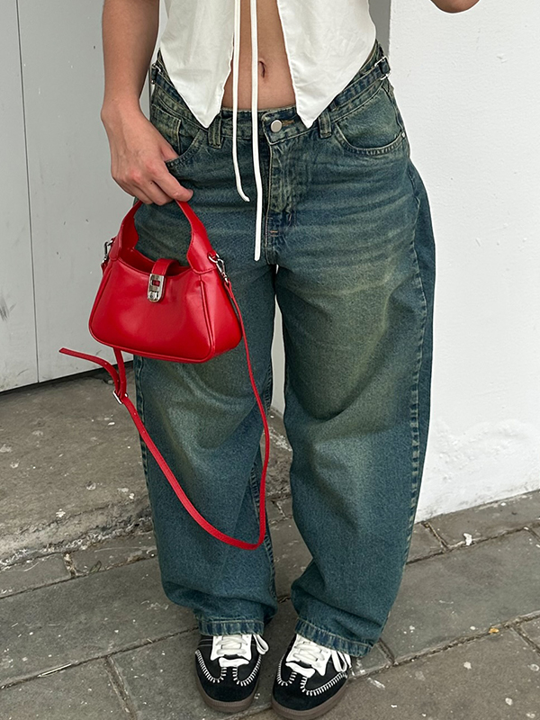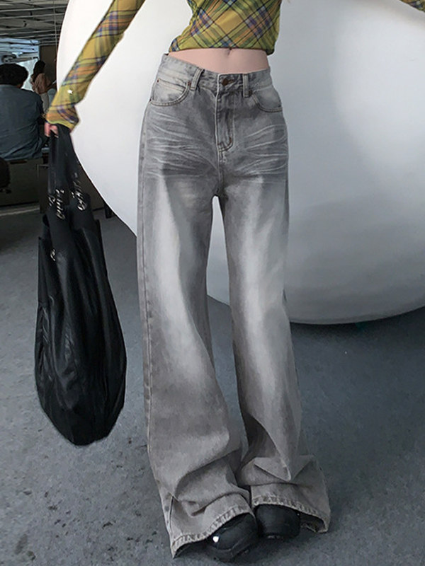 Vaqueros boyfriend de pierna ancha estilo vintage americano