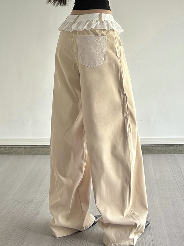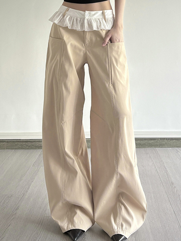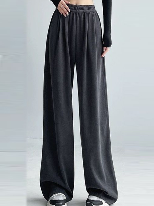 Pantalones anchos elásticos de tiro medio con estampado de leopardo
