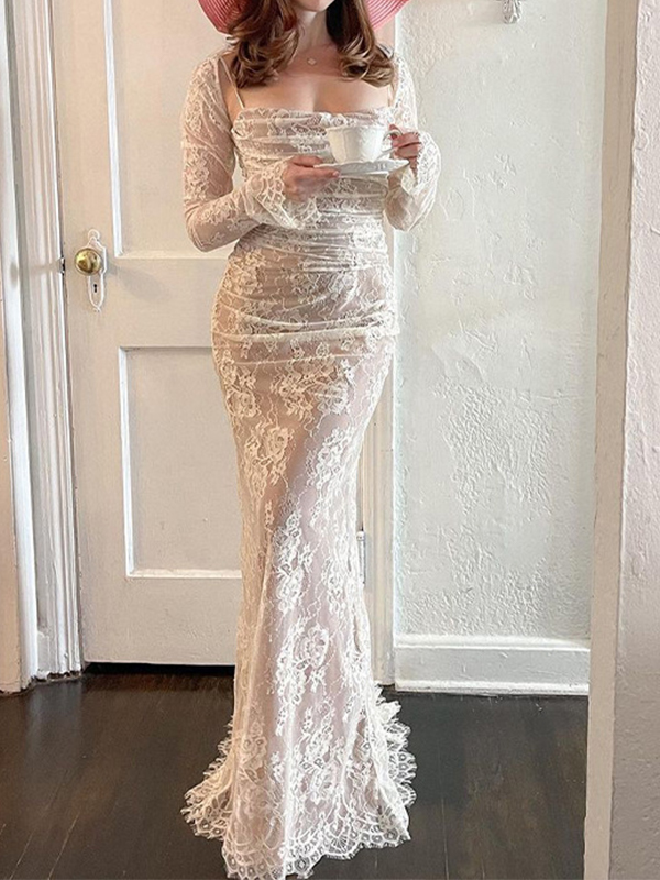 Vestidos largos con tirantes y manga larga con chaleco de temperamento