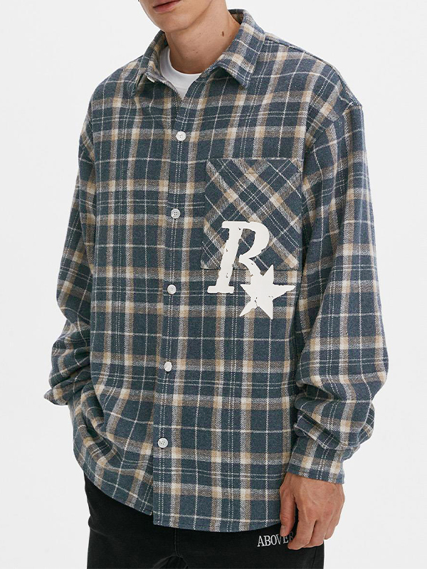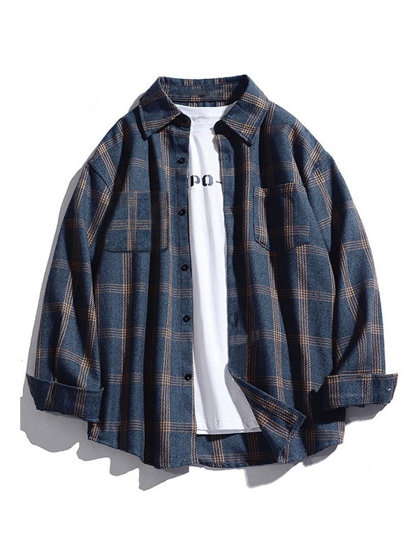 Blusa de hombre de manga larga adornada con estampado a cuadros