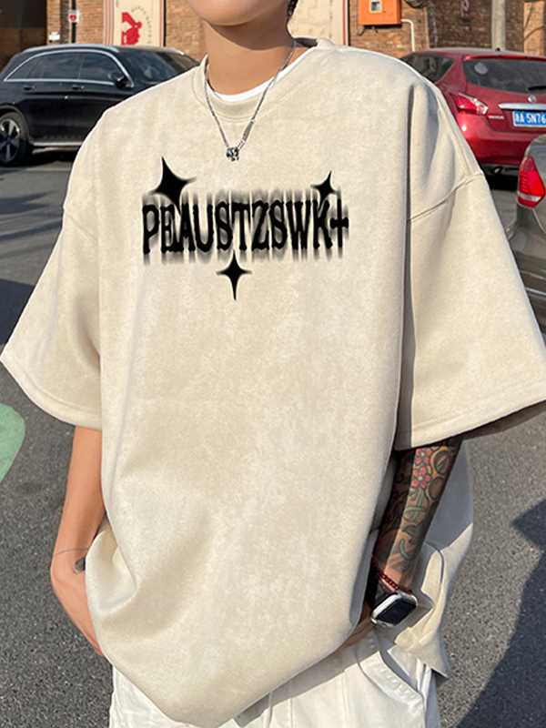 Camiseta extragrande de manga corta con estrella de ante para hombre