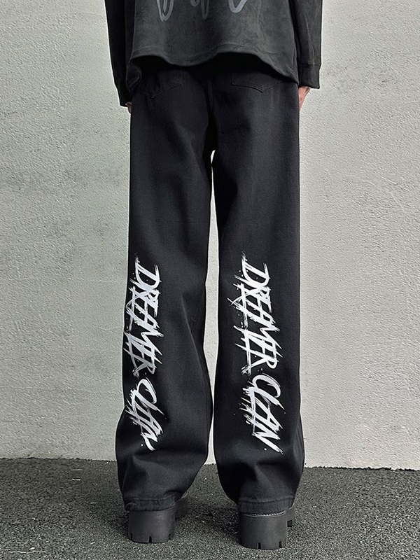 Vaqueros rectos holgados con letras de barro amarillas vintage