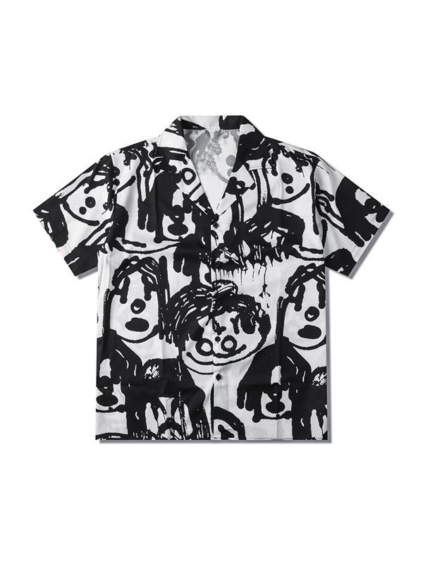 Camisa con botones y estampado de grafiti de dibujos animados para hombre