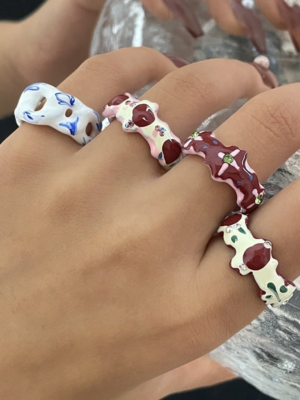 Anillo de puño de esmalte con adorno de diamantes de imitación