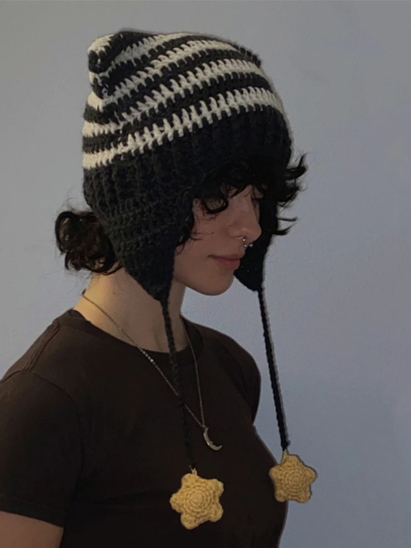 Gorro de punto con rayas de orejas de gato hecho a mano
