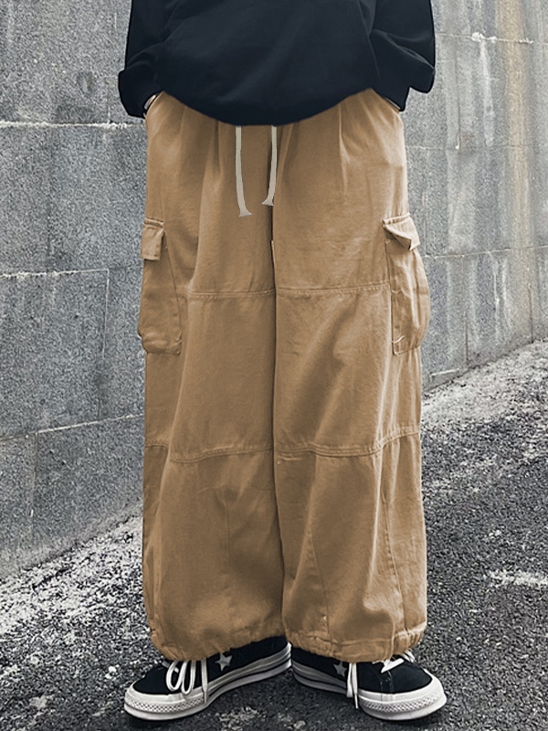 Pantalones cargo con pies atados con cordón y bolsillo vintage para hombre