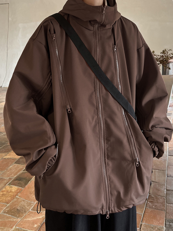 Chaqueta con cordón y cremallera sólida Gorpcore para hombre