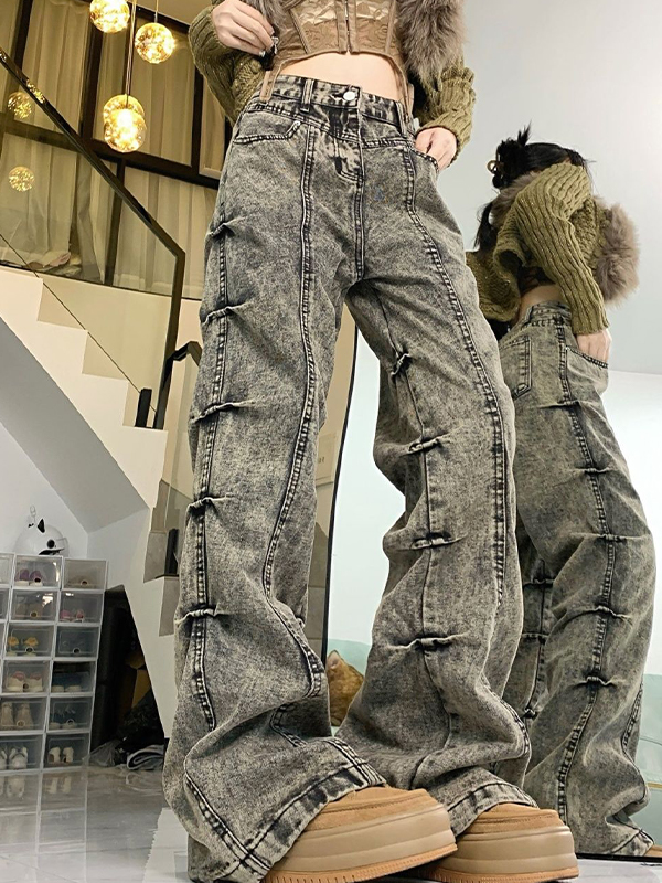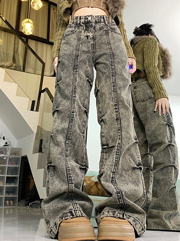 Vaqueros boyfriend con pliegues laterales y micro acampanados