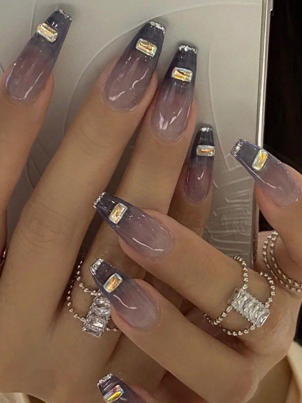 24 piezas de prensa de diamantes de imitación de colores en las uñas